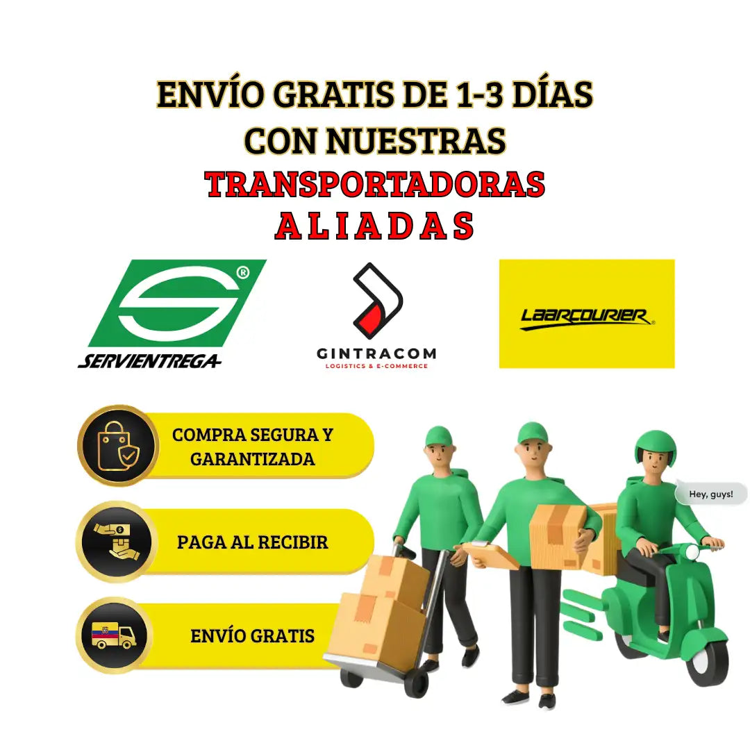 Somo una empresa 100% Colombiana de Medellín/Antioquia que tiene una bodega en Quito y distribuimos a todo Ecuador